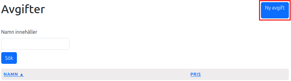För att skapa en avgift klickar du på knappen Ny avgift som syns på avgiftssidan.