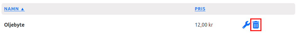 I tabellen finns en papperskorgsikon på varje rad. Klicka på denna för att ta bort avgiften. För att förhindra oavsiktlig borttagning behöver du bekräfta åtgärden innan avgiften tas bort.