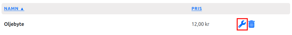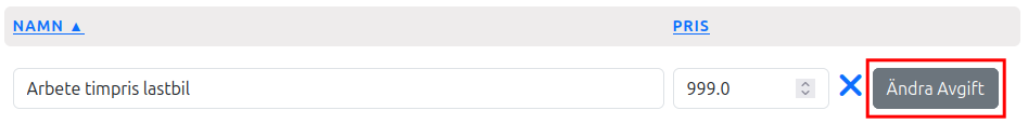 För att ändra en befintlig avgift klickar du på skiftnyckelsikonen i tabellen.