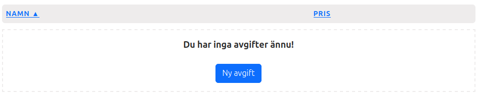 Om inga avgifter ännu har skapats visas ett meddelande om detta, tillsammans med en knapp för att skapa en ny avgift.