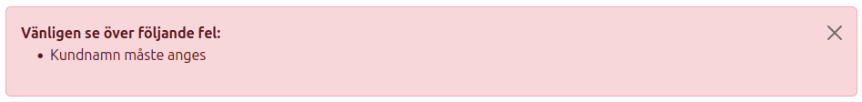 Om den angivna informationen inte uppfyller kraven för att skapa en order visas ett felmeddelande som beskriver vilka fält som innehåller fel.