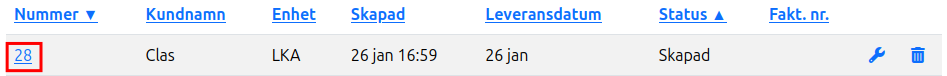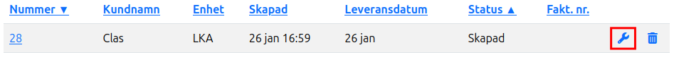 - Klicka på skiftnyckelsikonen i ordertabellen