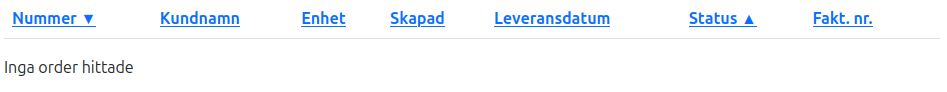 Om inga ordrar ännu har skapats visas ett meddelande om detta.