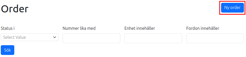 För att skapa en order klickar du på knappen Ny order på ordersidan.