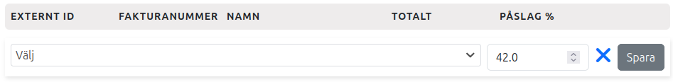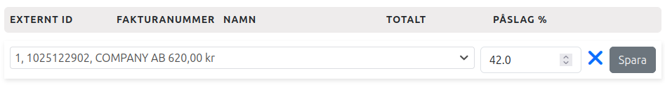 Samma formulär som används vid skapande av kopplad leverantörsfaktura visas, men med befintliga värden ifyllda. Klicka på knappen med texten Spara för att spara ändringarna, eller på krysset för att avbryta.