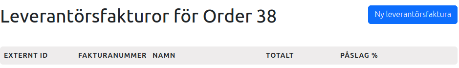 På sidan du kommer till visas en tabell med de leverantörsfakturor som är kopplade till ordern.