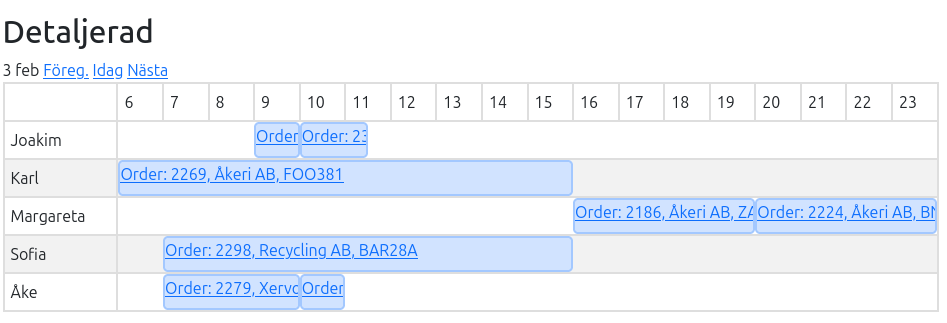 Du når den detaljerade vyn genom att klicka på Planering ⇒ Detaljerad i navigationsmenyn.