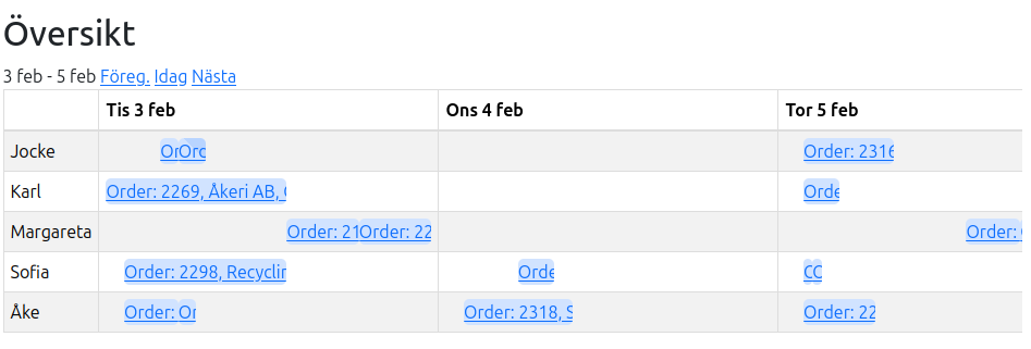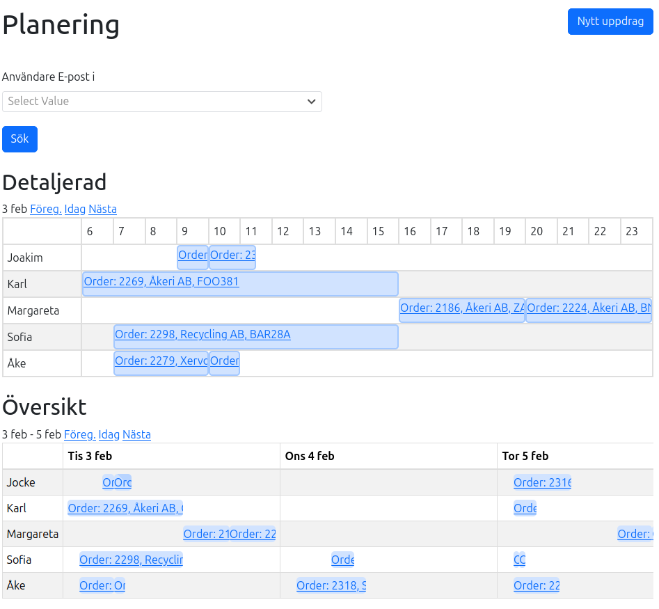 - Varje uppdrag innehåller information som ordernummer, kund och fordon