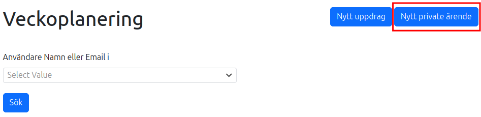 Du kan skapa ett nytt privat ärende genom att klicka på Nytt privat ärende i valfri planeringsvy.