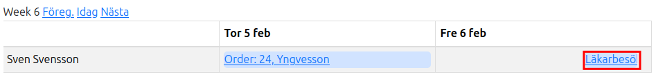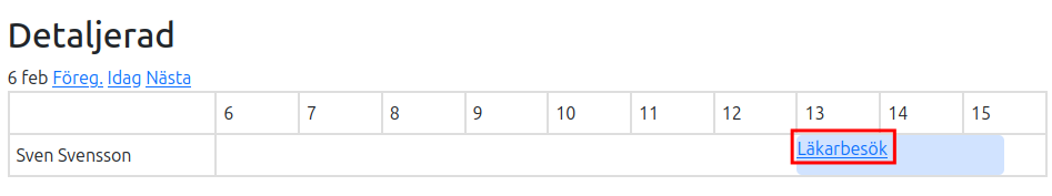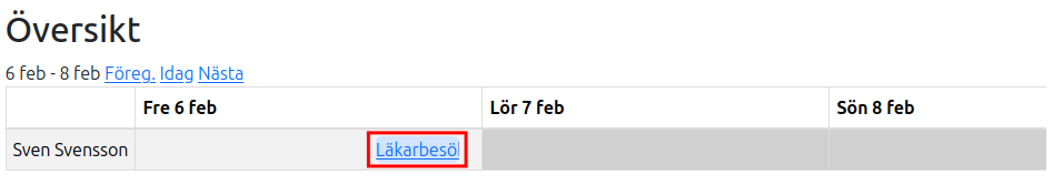 Du öppnar ett privat ärende genom att klicka på länken som visas i schemat. Länken består alltid av ärendets kommentar